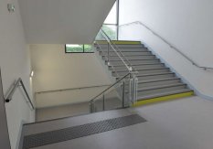 Escalier en sol PVC avec marches intégrales aux normes PMR dans un collège